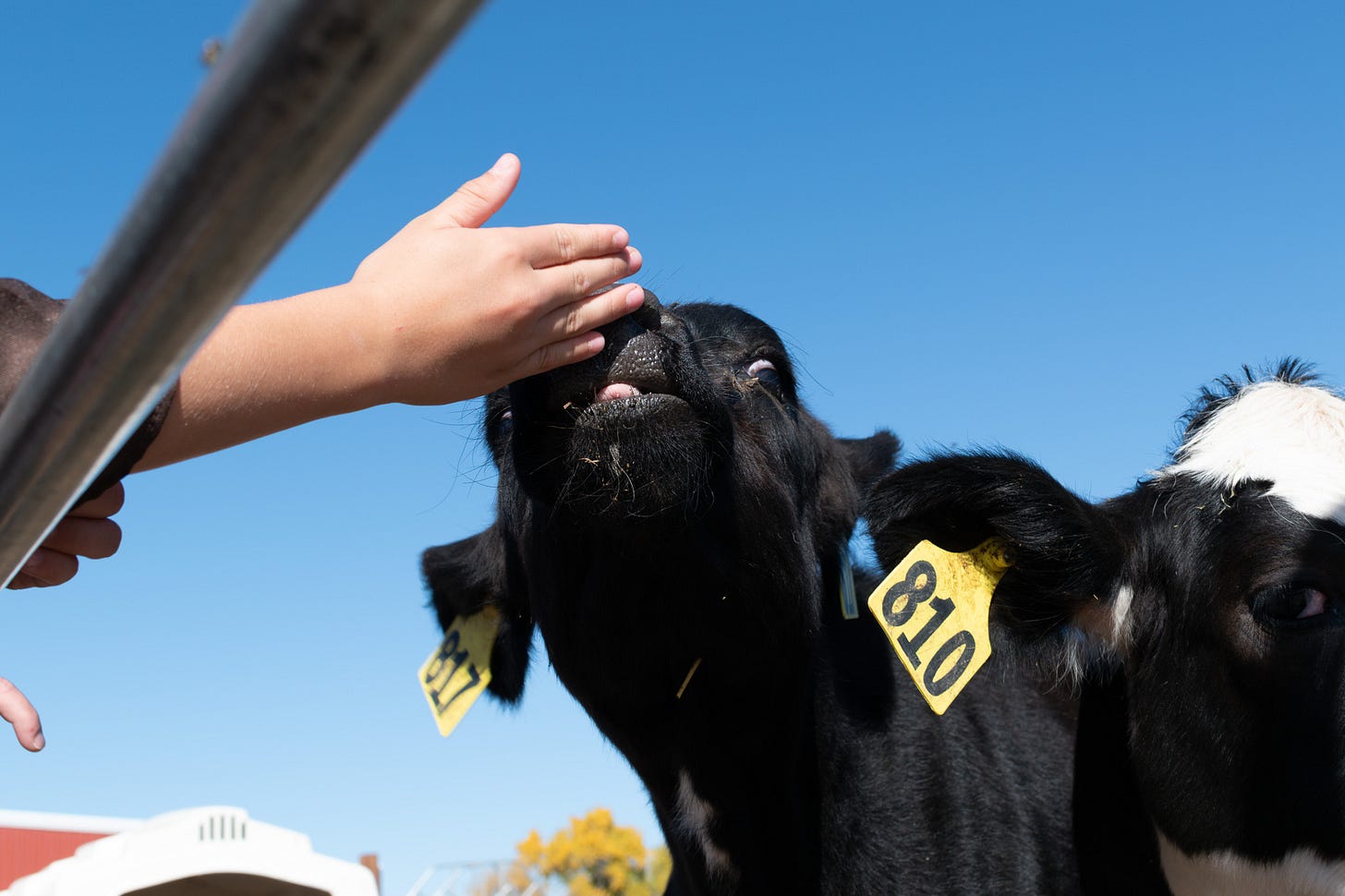 Outside, a calf — young enough that she was still curious, though she had already begun to hold back from human hands. She came to me only when I didn’t reach first. I let her choose. Her ears were soft, tagged with numbers that marked her place.